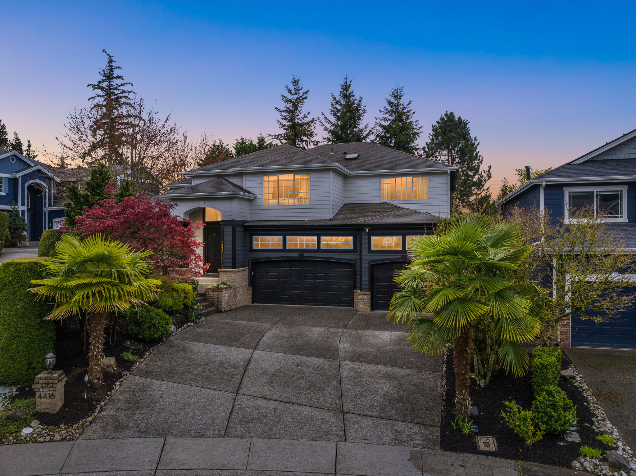 Welcome to 4416 239th Pl SE in Bothell. Extensively remodeled and tucked at the end of a cul-de-sac, offering 3,293 sq ft, 4 beds + main-floor office or guest suite & 2.75 baths. A grand, airy entry with soaring ceilings & a curved staircase sets the tone, showcasing its former model home design & elevated living where every detail has been thoughtfully considered. Designed for both everyday living & entertaining, the expansive, light-filled layout flows seamlessly throughout. At the heart of the home, the spacious kitchen has been fully reimagined—featuring quartz counters, custom cabinetry, stainless appliances, gas range, double ovens & an oversized island for gathering. Matte-finish solid oak hardwood floors & walls of windows create a warm, cohesive feel while bringing the outdoors in, enhancing the home’s private, nature-filled setting. Main-level bedroom or office w/ adjacent ¾ bath offers flexibility for guests or multi-generational living. Upstairs, unwind in the spacious bonus room or retreat to the serene primary suite w/ soaking tub, W/I closet & spa-inspired bath. Step outside to a private, fully fenced backyard w/ low-maintenance turf, mature landscaping, fruit trees & a paver patio w/ covered hot tub—perfect for hosting or your own oasis for relaxing. Complete w/ a 3-car garage, central A/C, smart home features, storage & no HOA. Ideally located minutes to Bothell & Woodinville, w/ easy access to parks, trails, dining & shopping— a rare balance of peaceful, suburban living & convenience.